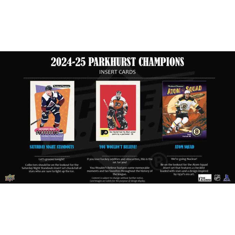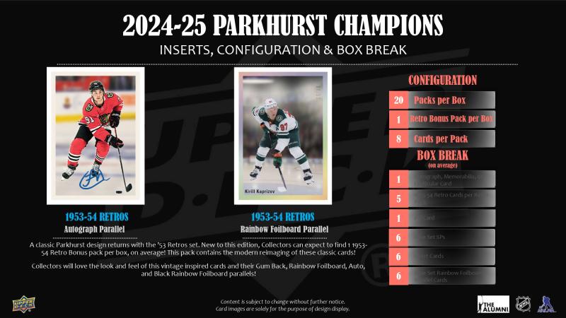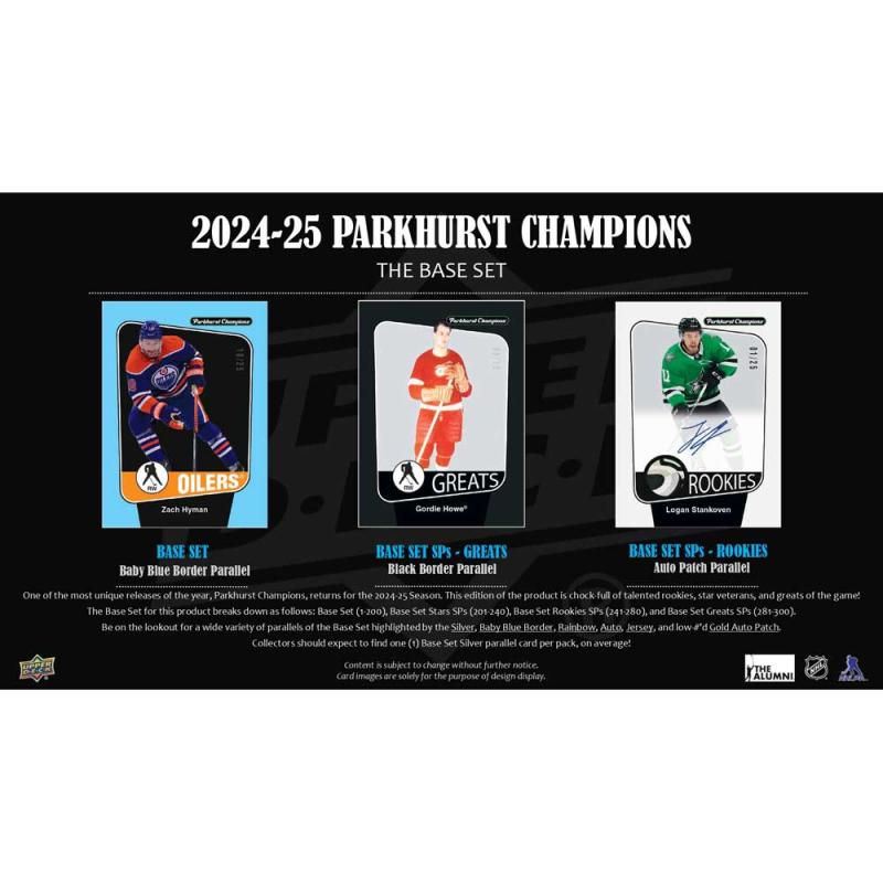 • One of the most unique releases of the year, Parkhurst Champions, returns for the 2024-25 Season. This edition of the product is chock-full of talented rookies, star veterans, and greats of the game!
