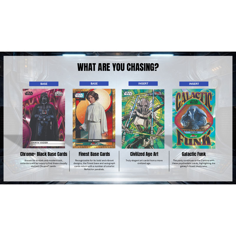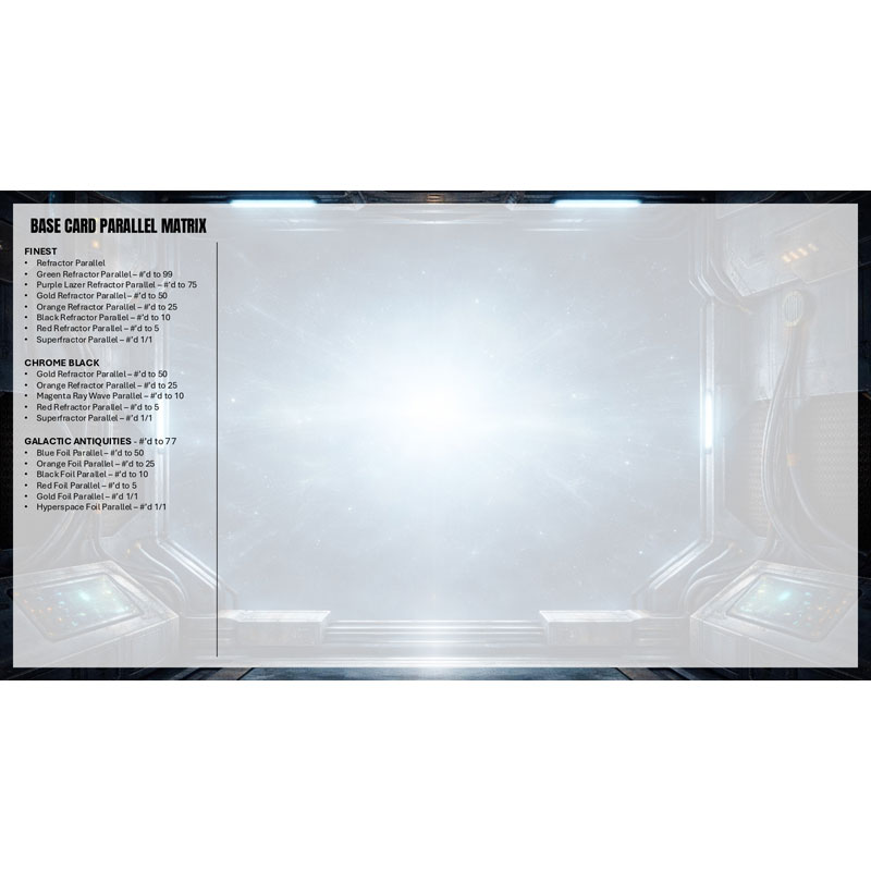 Chrome® Black Base Cards: Known for its dark and modern look. collectors will be happy to find these visually distinct Chrome® cards.