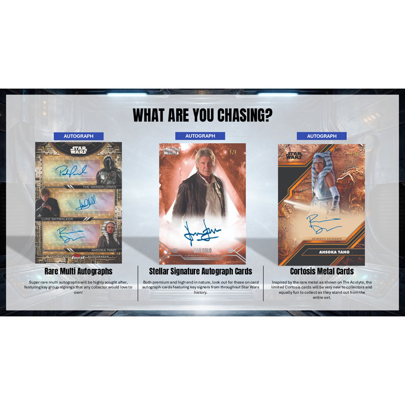 Stellar Signature Autograph Cards: Both premium and high end in nature, look out for these on card autograph cards featuring key signers from throughout Star Wars history.