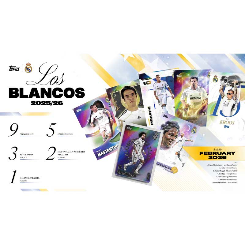 PRE-BUY: Sealed Box 2025-26 Topps Real Madrid Los Blancos (Preliminary release February 12:th 2026)