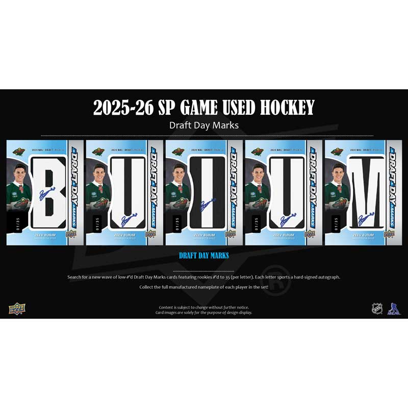 Search for a new wave of Draft Day Marks cards featuring rookies #’d to 35 (per letter). Each letter sports a hard-signed autograph.
