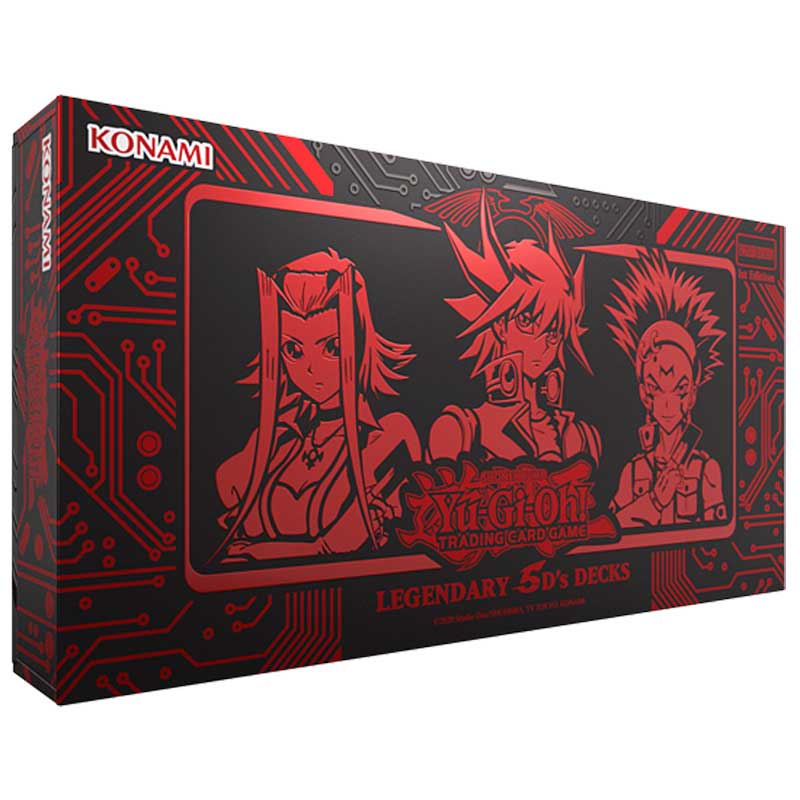 Legendary 5D’s Decks contains THREE complete, ready-to play Decks, each with 50 cards (5 Ultra Rares, 45 Commons per Deck):