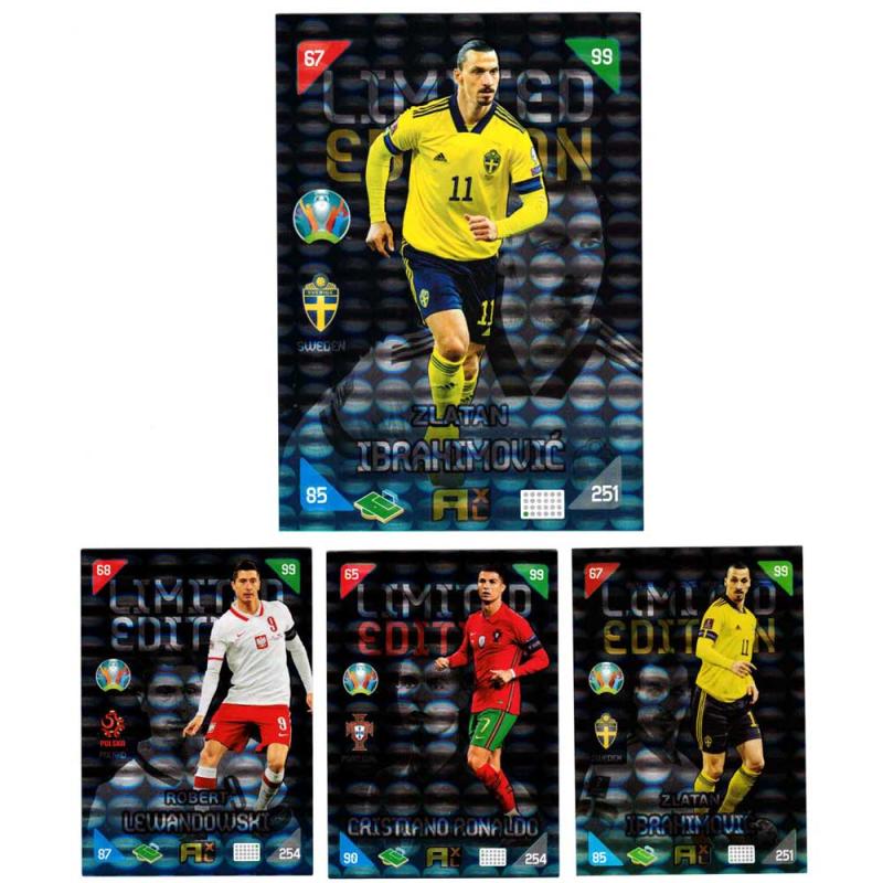 3 Limited Edition Cards (1 av dessa är Zlatan Ibrahimovic, i de starters vi öppnat har det utöver Ibra varit Ronaldo & Lewandowski, men det vet vi inte om det är varje gång)