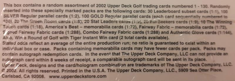 1st Paket 2002 Upper Deck Golf Hobby