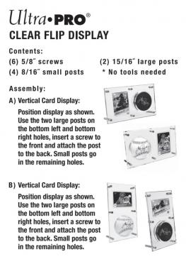 Put your most valuable player on display with Ultra PRO's clear Puck & Card Flip Display, designed to fit one puck and one standard size trading card. This holder is made with thick, high quality and ultra-clear materials that is non-PVC. The holder is secured by six (6) silver support posts that can easily be screwed on or removed without any special tools. These support posts can be moved around different corners of the holder to convert the display from a vertical format into a horizontal format to accommodate trading cards that are printed horizontally. With a sleek, minimalist design, this display is an excellent way to make your collection stand out. Sized to hold standard cards up to 35pt thickness.