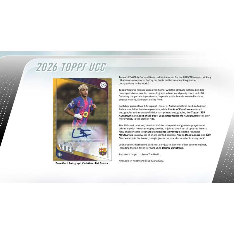 Topps UEFA Club Competitions makes its return for the 2025/26 season, kicking off a brand-new year of hobby products for the most exciting soccer competitions in the world!