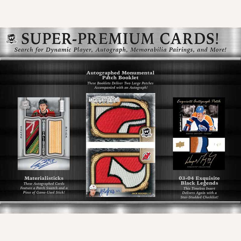 o Autographed Monumental Puck Booklet: Each of these booklet cards features a piece of game-used puck from a specific listed NHL game, hardsigned from a top subject!