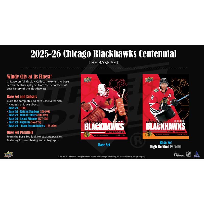 • Celebrating a century of greatness on the ice! Collectors should be on the lookout for the all-new Chicago Blackhawks Centennial Hobby product which sports a 100-card Base Set that showcases some of the most iconic Blackhawks of the past century.