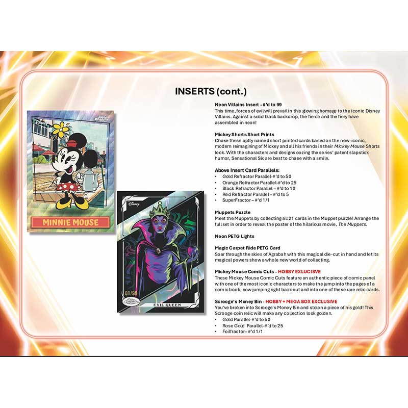 200 cards featuring characters from Disney! Featuring dynamic colorful Neon parallels!